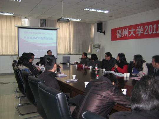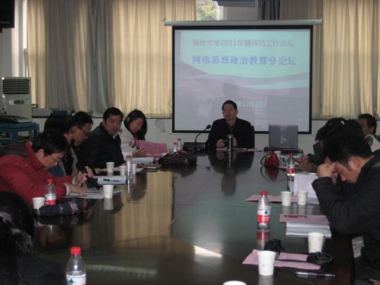 12月30日9时20分,emc易倍体育app2011年辅导员工作论坛网络思想政治教育分论坛在大学生素质拓展中心402正式举行。此次论坛由emc易倍体育app承办,出席本次论坛会议的有emc易倍体育app党委副书记刘旺、团委书记周越、11级辅导员刘燕以及其他各学院的辅导员代表。