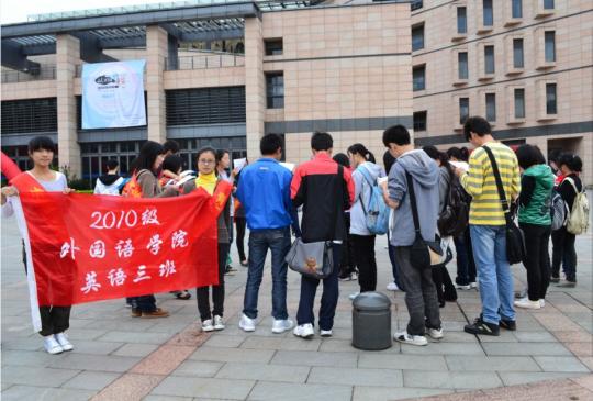 10英三团支部多方吸取意见,集全班同学的智慧,制定初步的晨读的形式:以一篇激励人心的演讲、一篇四、六级考试范文以及各种训练口语的小形式作为晨读内容。活动前,班长和团支书调动全班同学的积极性,采用地毯式宣传,不仅在生活区的宿舍楼张贴宣传单,还通过大众喜闻乐见的新形式如班级微博、个人空间进行大力宣传。特别的是,微博宣传得到校微博协会和各个兄弟班级以及上级领导老师的大力支持,获得极大成功。
