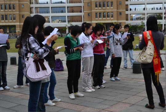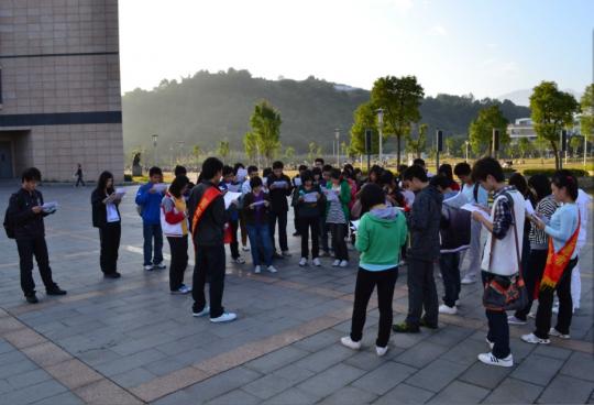 11月29日到12月3日,emc易倍体育app10级英语3班团支部携手管院口协在图书馆前的福万广场举办了为期一周的晨读倡导活动。此次活动以倡导福大学子积极学习英语为目的,通过晨读搭建英语专业学生和非英语专业学生共同学习的平台,把英语学习的方法分享给有意学好英语的同学,,为福大营造一个浓厚的英语晨读氛围。