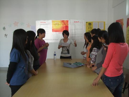 09级英语2班则以“少年当自强”为主题,通过集体讨论和小组代表发言的形式,结合身边的现象对曹阳飞宇的自立自强精神进行了深刻探讨和学习。而11级日语一班则创新地将当下社会上的“小悦悦”事件与曹阳飞宇的先进事迹相结合,开展了以“通过曹阳飞宇事迹看社会”为主题的教育活动,对“当下社会道德究竟缺失与否”进行了深刻探讨和反思。